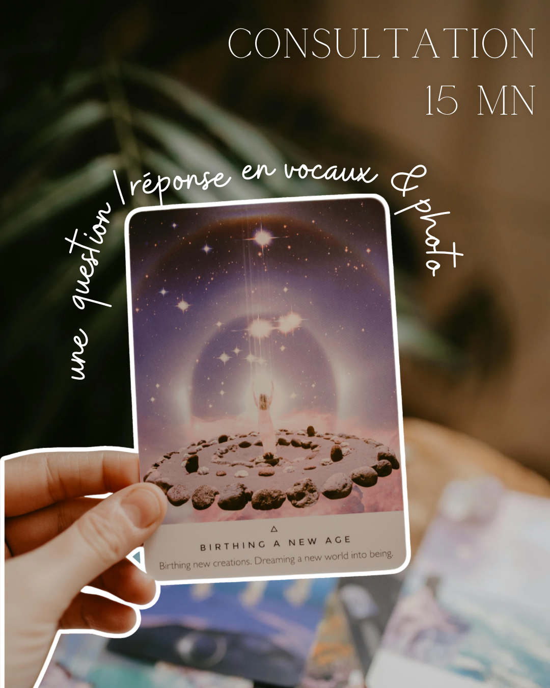 Cette consultation de 15 minutes est faite pour toi. Je réponds à ton interrogation principale dans un délai de 24 à 48h. Tu recevras une photo du tirage accompagnée de vocaux explicatifs pour en comprendre toute l’analyse.